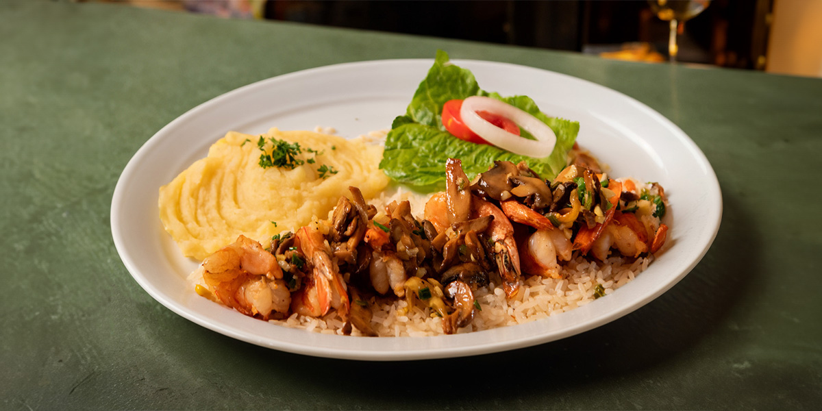 Los camarones utilizados en nuestras preparaciones son seleccionados cuidadosamente para garantizar la frescura y calidad. Dependiendo de la preparación elegida, utilizamos ingredientes como ajo, limón, chiles, especias y pan rallado para realzar los sabores y las texturas. Para acompañar, servimos los camarones con arroz y puré de papa, que equilibran y complementan los sabores marinos.